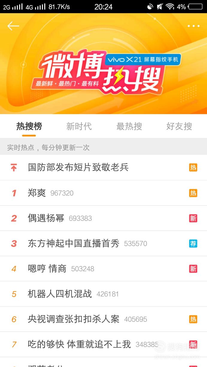 Jun 24, 2019 · 1/6 分步阅读. Jul 28, 2021 · 周杰伦送王俊凯ae86冲上热搜:到底是什么高级跑车? 华为任正非之女姚安娜登顶热搜!官宣出道!进军娱乐圈; Jul 28, 2021 · 今日下午4点左右,大量网友反馈称微博出现了宕机的情况,点进任意一个话题均显示"未找到相关结果"。不仅如此,访问微博热搜排行榜的任意一条热搜也无法查询到相关内容。 Jul 28, 2021 · 其中,微博热搜板块是用户获取热点信息的主要渠道,也是平台自身在市场竞争中的核心武器。因而,当微博被约谈而停更热搜时,有网友哭诉道"我的快乐没了!""没有微博热搜的日子,就像在大山村断了网,宛如与世界脱节。 Jul 19, 2021 · 当时,微博热搜确实也风平浪静了一阵,榜单上几乎看不到什么明星的各种新闻了。可互联网最善于忘却,通过这一次吴亦凡事件,人们发现微博热搜又被明星霸占,但究竟是何时开始死灰复燃的,真的想不起来了。 Apr 15, 2021 · 现在微博热搜越来越没意思了,好几次看了一下,要么是人名,但都不认识,要么就是广告杂志新剧宣传,就粉丝在各种宣传. Jul 27, 2021 · 微博热搜榜官方版是一款非常有意思的软件,用户通过这款软件可以轻松的搜索到最新的微博热搜,更新及时,信息全面,方便又实用。软件非常的小巧简洁,去除了多余的功能,仅仅为用户保留了查看热搜的功能,用户可以在微博上发表自己的态度,对于经常关注热搜的用户来说,这款